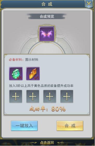 道具合成提供强化石合成;合成高阶强化石需要消耗指定数量的低阶强化石。