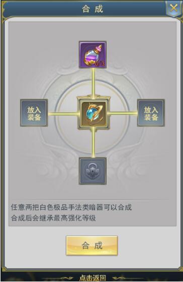 合成需要消耗指定道具与任意满足品阶、部位等条件的装备;合成后的装备会继承材料中强化最高的强化等级。