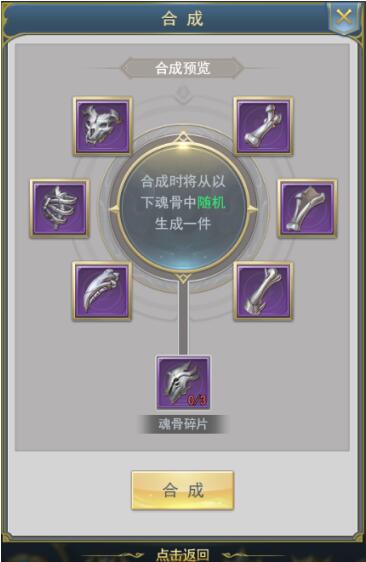 ①合成紫色魂骨需要消耗3个魂骨碎片,产出随机部位魂骨;