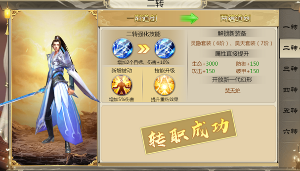 一转完成后并不能够马上进入二转,角色还需要达到130级才能开始二转任务。二转解锁后,新增被动技能,解锁新的装备,开放新一代幻形。