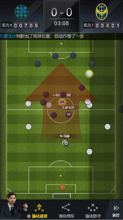 初入游戏世界,《球王之路H5》准备了比较贴心的新手引导,手把手教玩家体验游戏的每一个步骤。包括如何在比赛中强化进攻,强化传控,强化防守等。