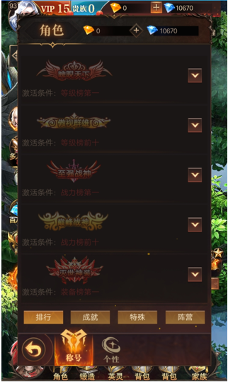 称号:通过达成不同的成就可以获得不同的称号,称号可以直接展现在主界面角色形象上方。