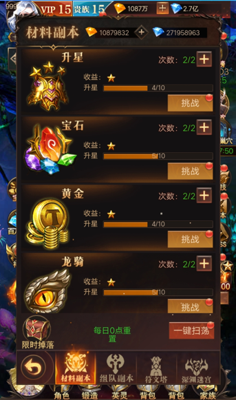 副本系统是游戏内重要的副本系统之一,是玩家产出材料的主要途径,包括材料副本、组队副本、符文塔、深渊迷宫等玩法。通过完成不同的副本,玩家可以获得大量的材料,用于提升角色战力等。