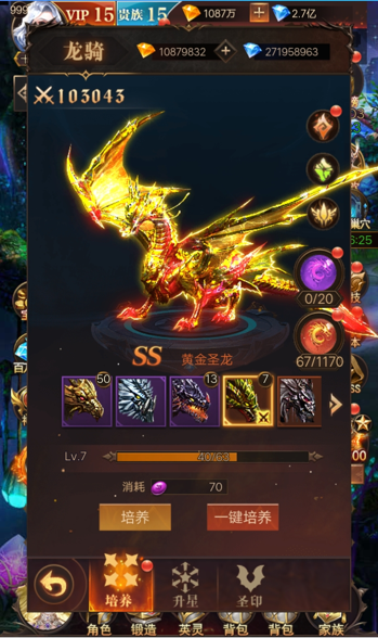 龙骑激活后可设置龙骑出战,跟随角色一起战斗,每个龙骑都可进行培养,培养可增加龙骑属性,获得相同的龙骑可升星提升属性,龙骑攻击携带灼烧效果