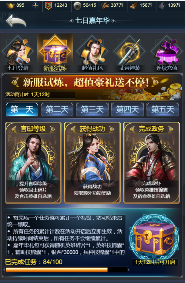 “七日嘉年华”里第二个,也是对各位主公接下来的游戏发展具有一定引导性质的活动便是“新服试炼”。