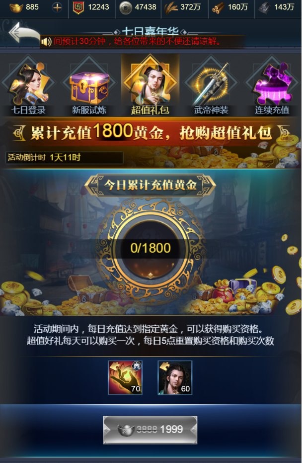 为了帮助各位主公渡过最艰难的“创业期”,《最强王者》特别推出了七日嘉年华的活动。