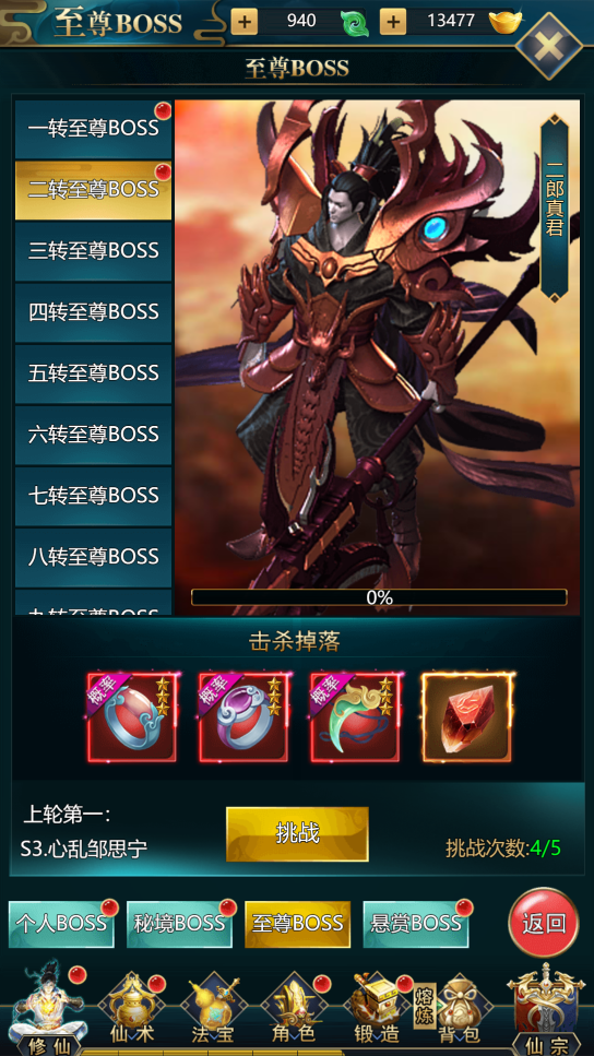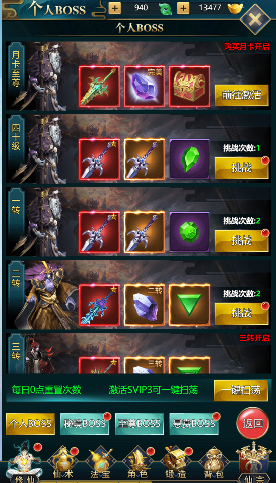 2、角色达到相应等级或转生等级,即可讨伐相应的个人BOSS。
