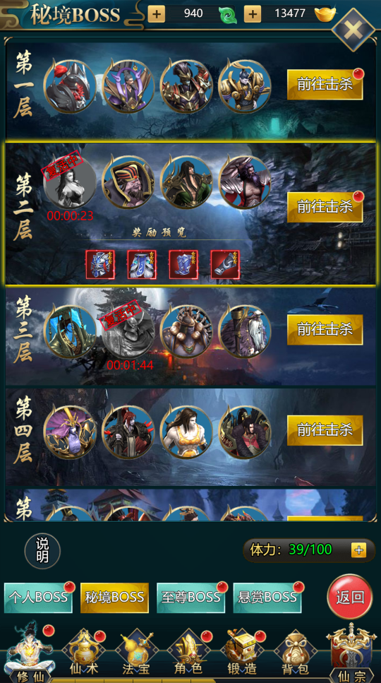 2、秘境BOSS共有9层,分别对应转生1~9重,达到对应转生等级即可进入。