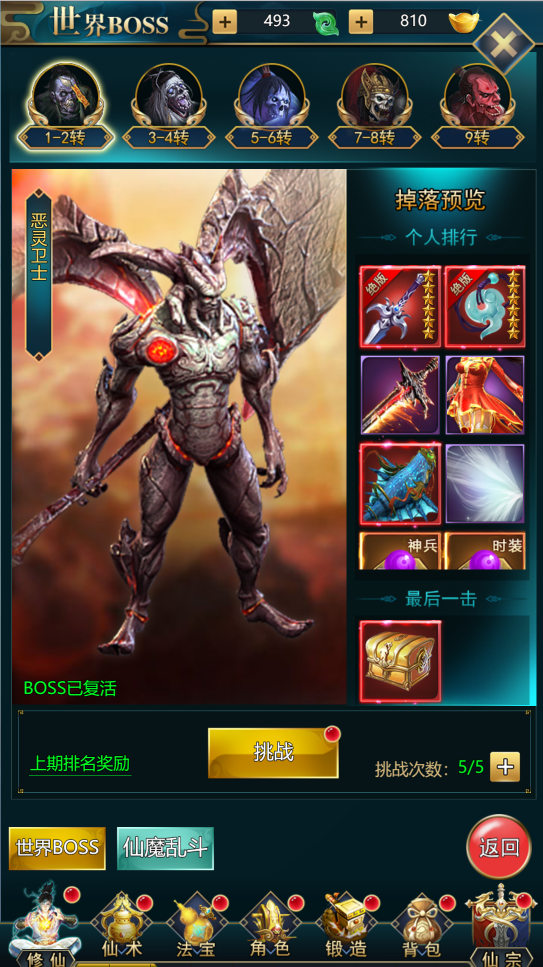 3、达到对应转生等级,才能对世界BOSS进行讨伐。