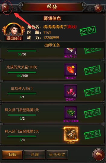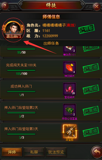 传奇来了H5如何解除师徒关系,如何退出师门,怎么换师傅和徒弟?