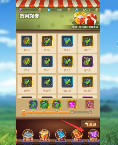 第二部,向右滑动底部栏,可以看到“激活码”图标
