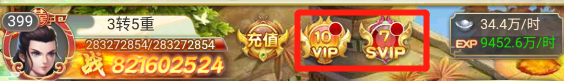 游戏中有VIP和SVIP两套VIP体系,其中VIP系统可通过闯关和等级提升等途径免费获得,在游戏内可点击上方VIP按钮查看。