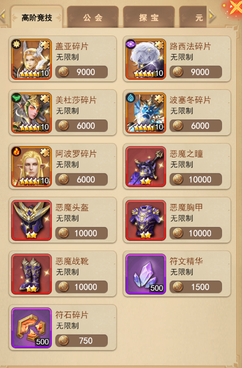 参与该玩法可获得勇者硬币,可以在兑换飞艇的高阶竞技场里兑换物品,这边推荐兑换光暗系英雄。