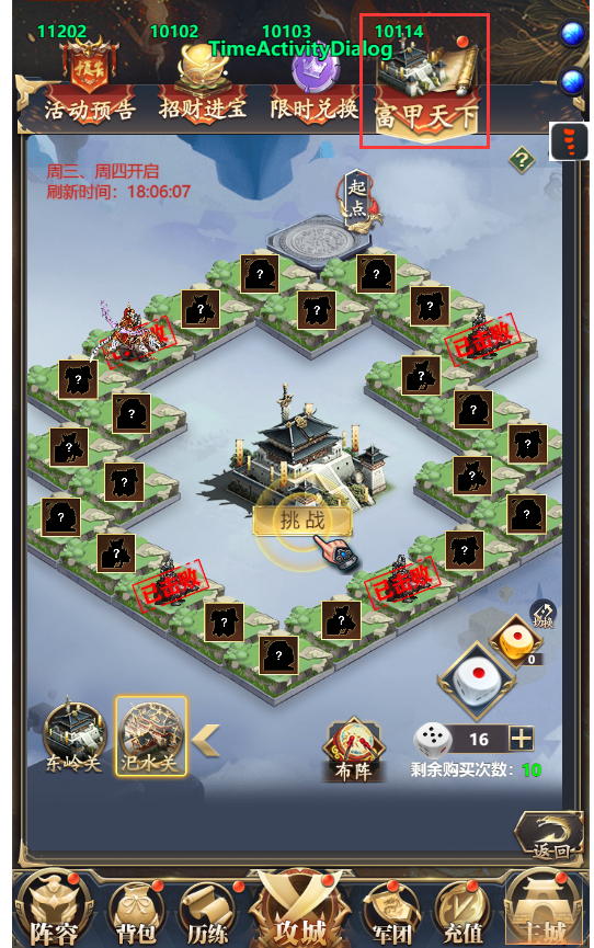 2、使用活动的玩法道具(临时道具,只在此玩法有效),可以强化我方挑战阵容