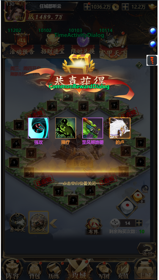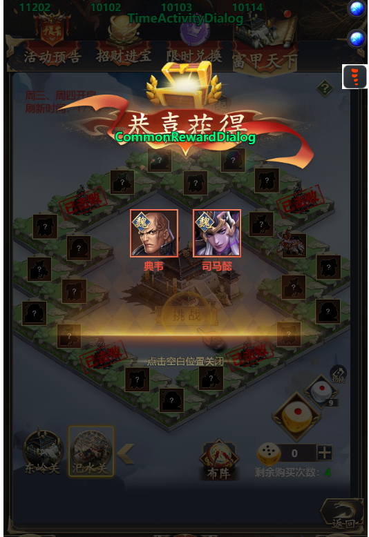 3、每一关把4个守将挑战成功后就可以挑战中间的BOSS守将,挑战成功能获取奖励哦