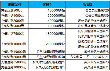 ③如已获得时装[焚渊龙刃]、[鎏光蟠龙袍],奖励将折算成龙皇/龙尊剑甲自选箱*1、100万绑钻;已获得永久称号[一刀一个小盆友],则奖励将折算成100万绑钻