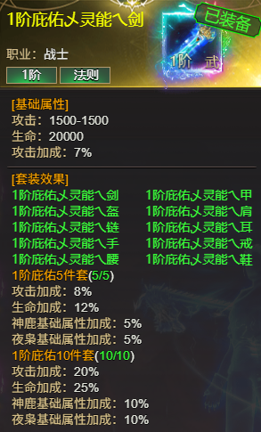 ②英灵装备可在月神、日神、风神、战神四套任意选择